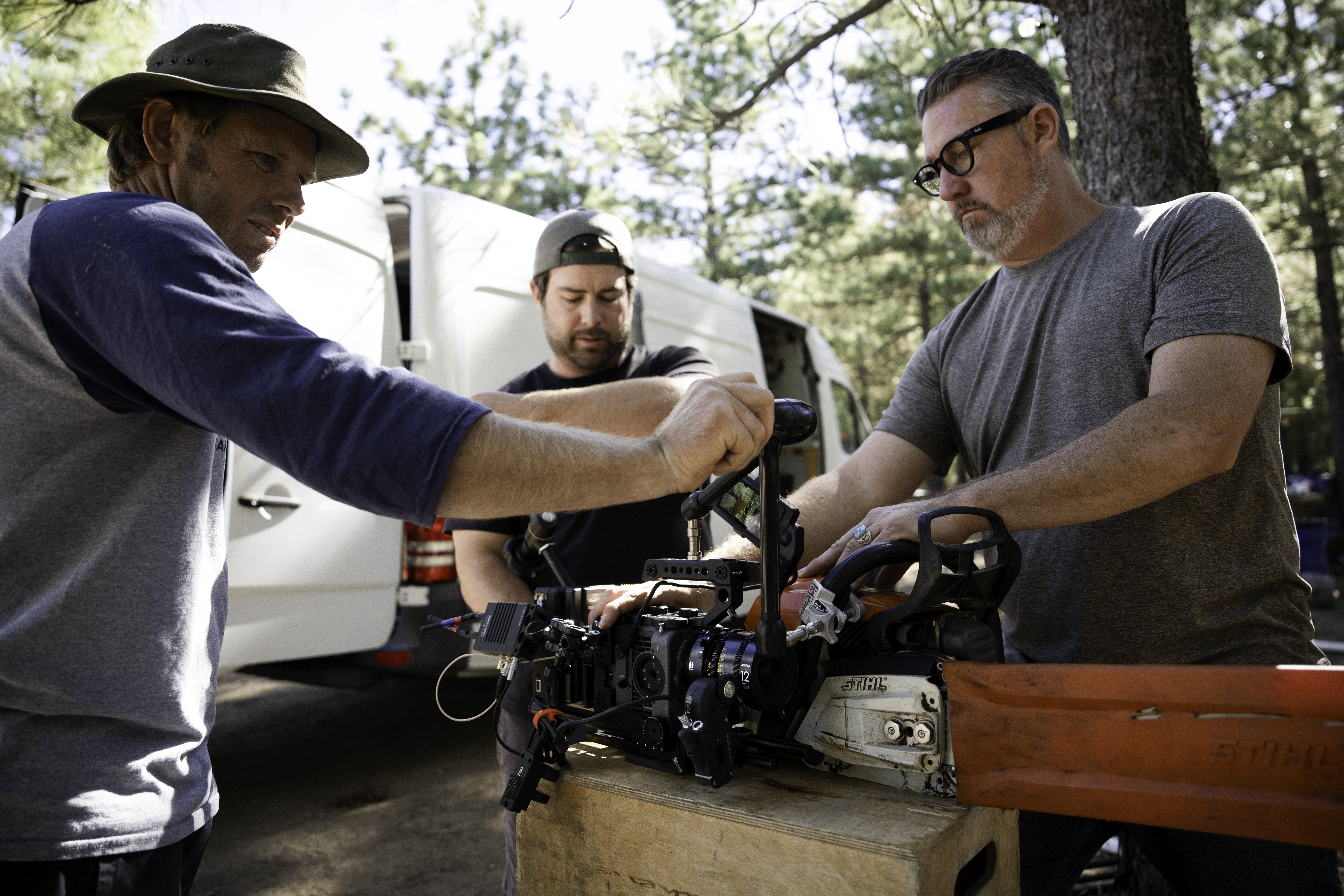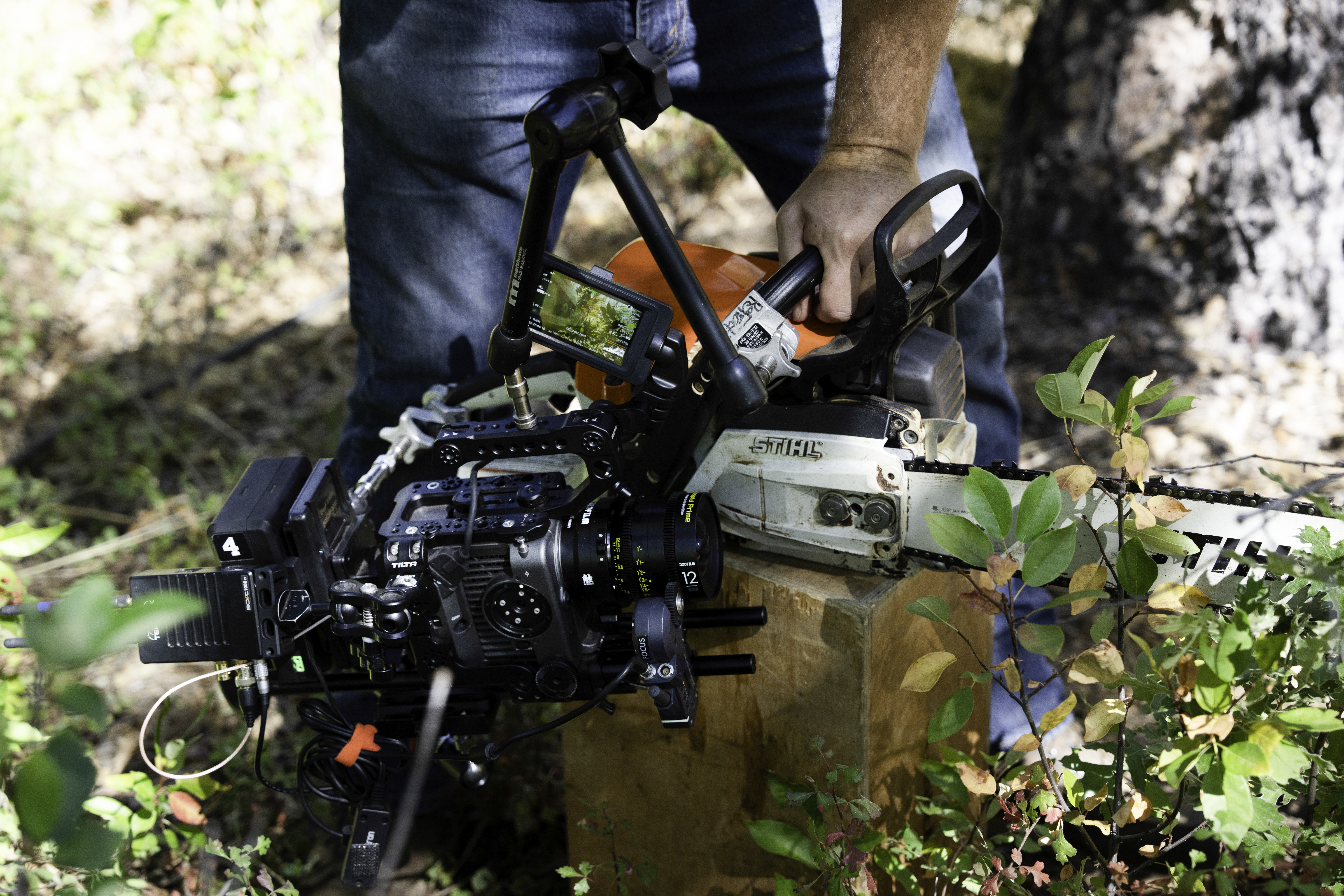I wanted the audience to feel close to the craftsman, seeing and experiencing the work firsthand. The 12mm and 90mm Macro Vespids were perfect for that. Their close focus and organic character added warmth and intimacy, giving the film a tactile, cinematic quality that feels alive rather than overly sharp or sterile. We also needed lenses that were relatively lightweight in order for us to rig the camera to unlikely rigs like a chainsaw and measuring tape to achieve that highly immersive POV look.