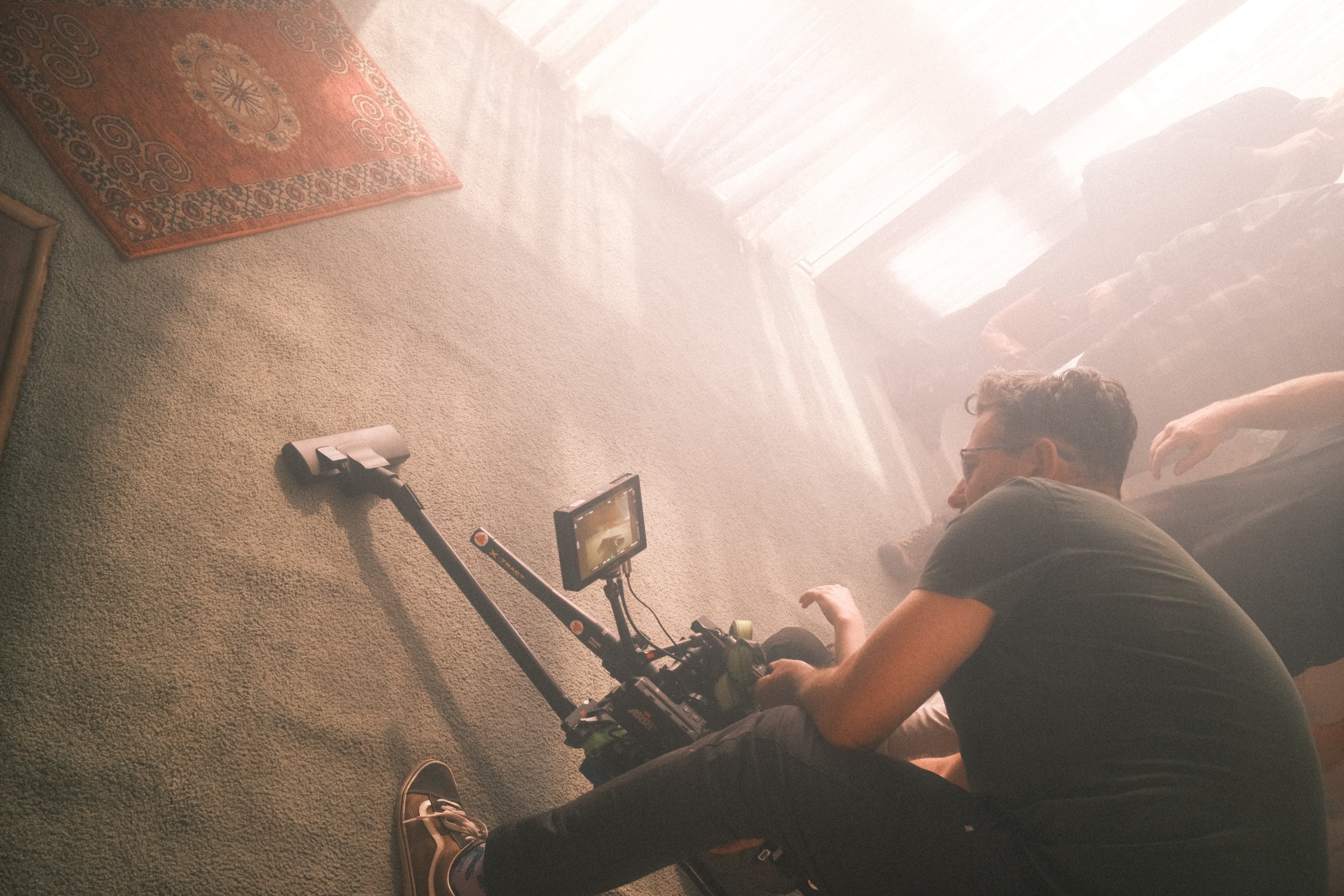 We particularly loved having both a 14mm and a 21mm in the lineup. The 21mm, 25mm, and 40mm became our main workhorse lenses. We also planned some creative probe shots and used the DZOFILM X-Tract 18–28mm Probe for the vacuum cleaner sequence. Across the range, the lenses felt very consistent, which was hugely important for the project.