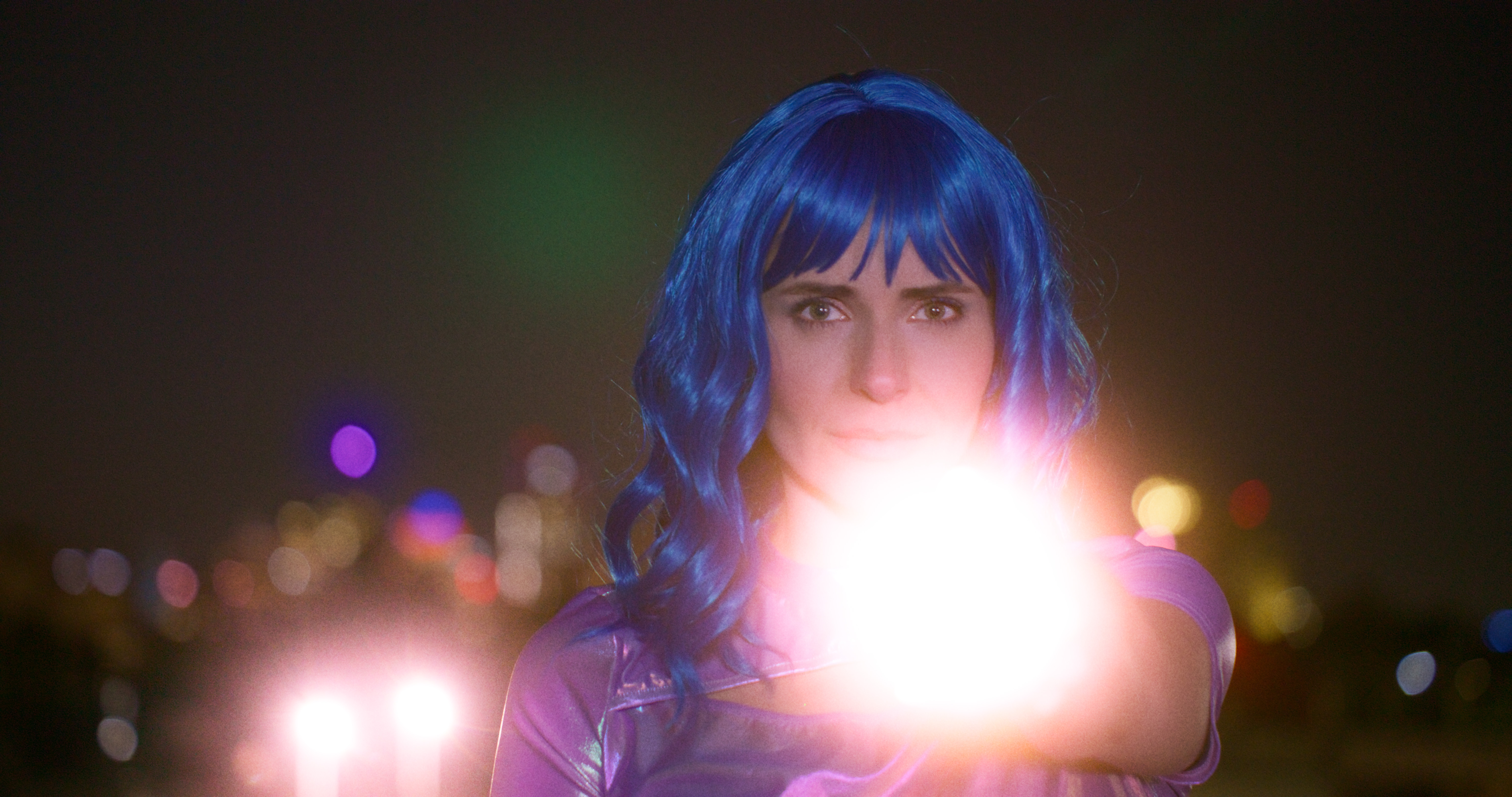 The heroine in the TV series is a pop singer Gwyn who has the blue hair, because the score for the TV was composed and recorded by William "Bleu."